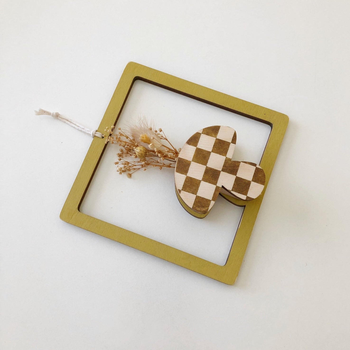 Hang from cotton cording or use a nail to hang on the wall.