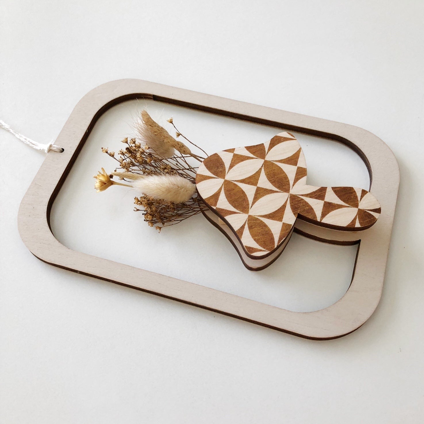 Hang from cotton cording or use a nail to hang on the wall.