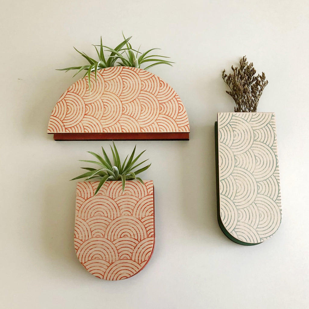 A modern skinny pocket planter to fit air plants, garden flowers, and dried floral. Create a living wall galllery with an ever-changing arrangement of plants in different shapes and patterns. Perfect for small spaces too.